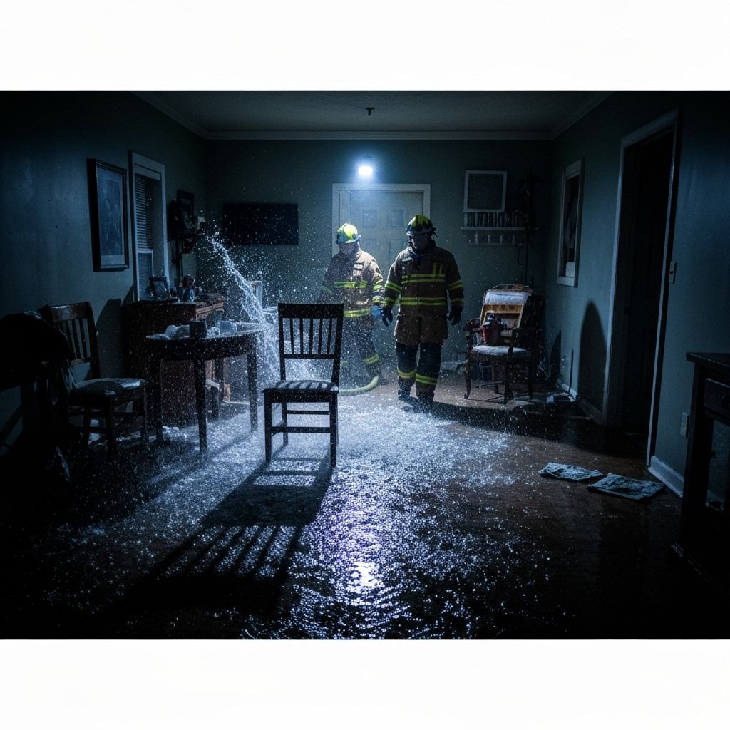 Emergency residential water damage response with professional dehumidifier deployment and moisture control